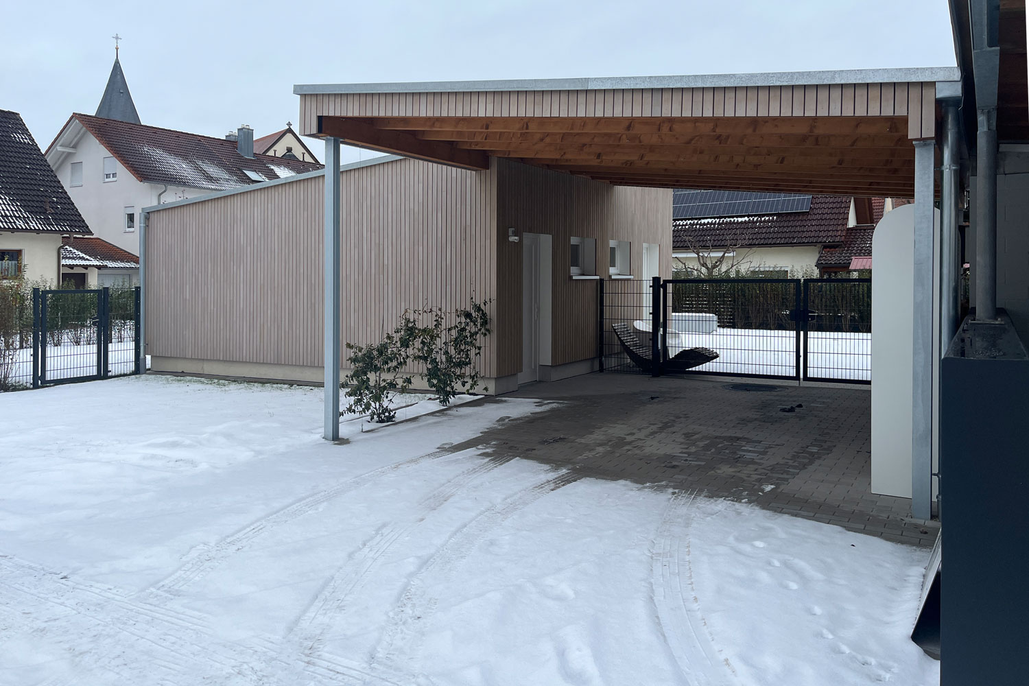 Wir freuen uns, Ihnen eines unserer aktuellen Projekte vorstellen zu dürfen: der Neubau eines Schuppens mit Carport und die Neugestaltung eines Gartens in Oberachern, Fertigstellung 2025.
